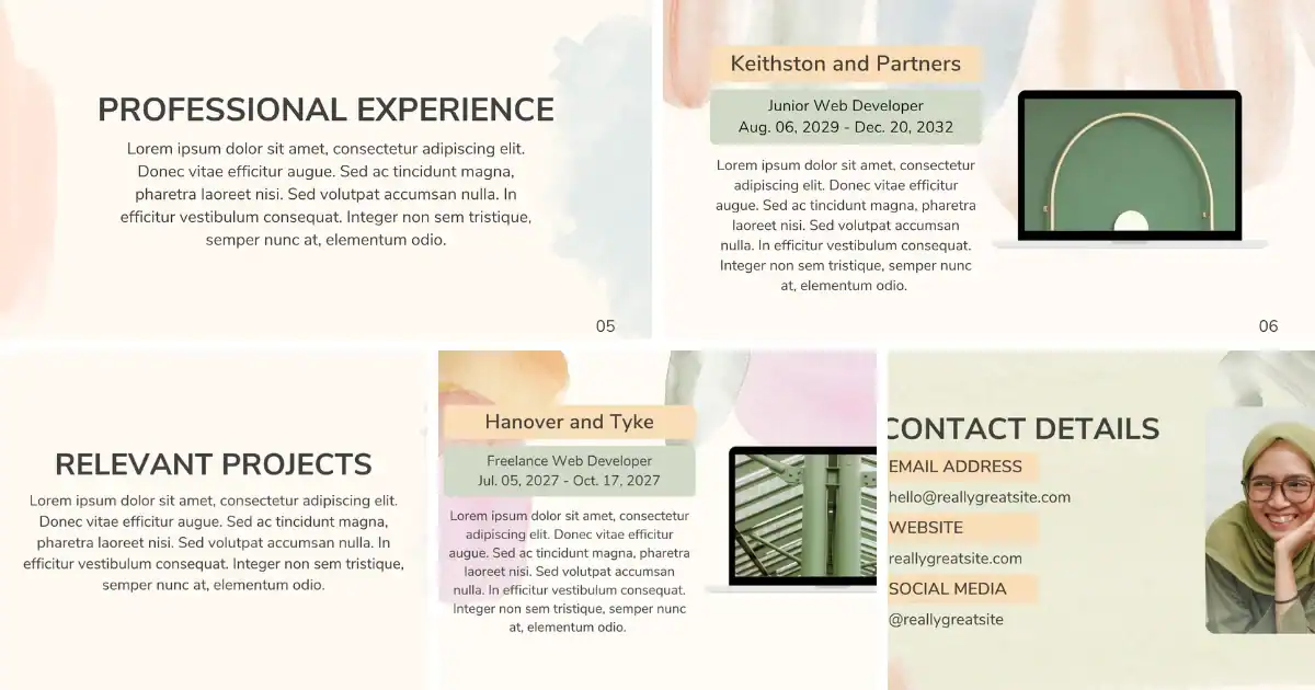 Untuk CV, gunakan tampilan yang bersih, formal, profesional, dan tidak terlalu banyak elemen visual. Sementara itu, pada portofolio pastikan alur navigasi jelas agar karya mudah dilihat tanpa elemen yang mengganggu atau mengalihkan fokus.